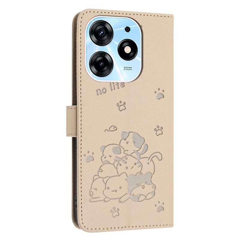 Θήκη δερμάτινη για Tecno Spark 10 Pro / K17 4G με ανάγλυφο σχέδιο γατάκι και κορδόνι (Μπεζ)