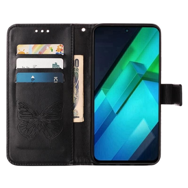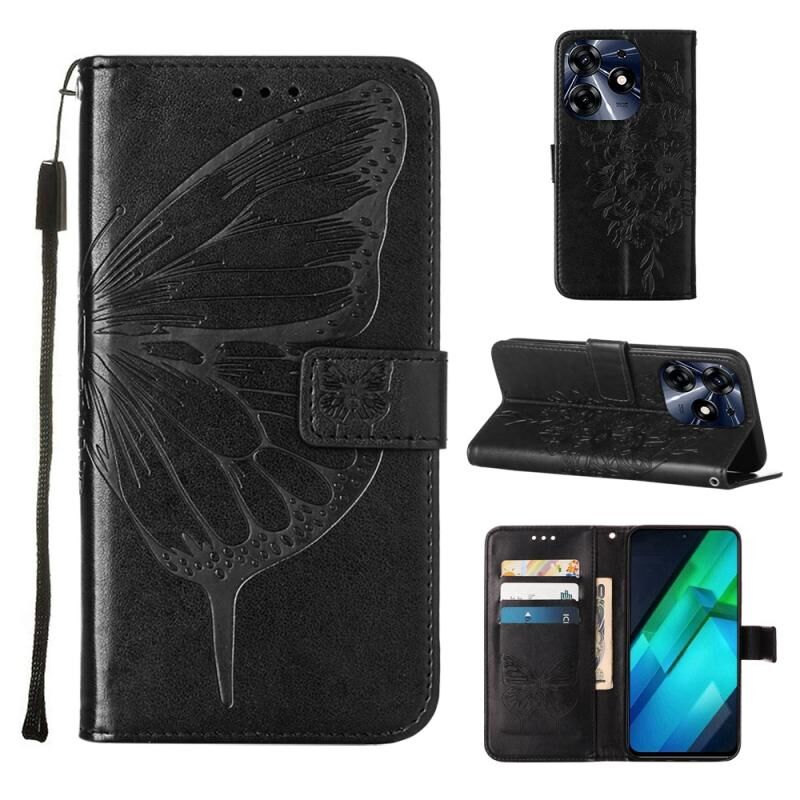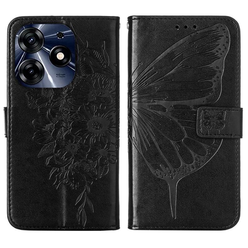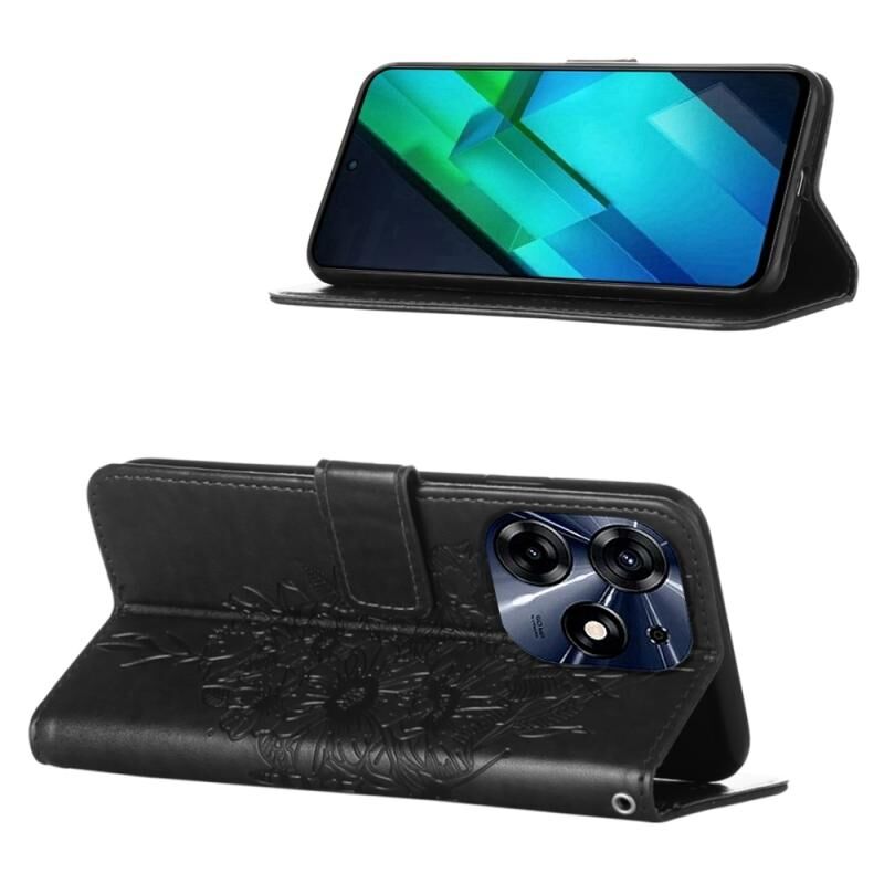 Θήκη τηλεφώνου από δέρμα με ανάγλυφο σχέδιο πεταλούδας για Tecno Spark 10 Pro / Ki7 (Μαύρο)