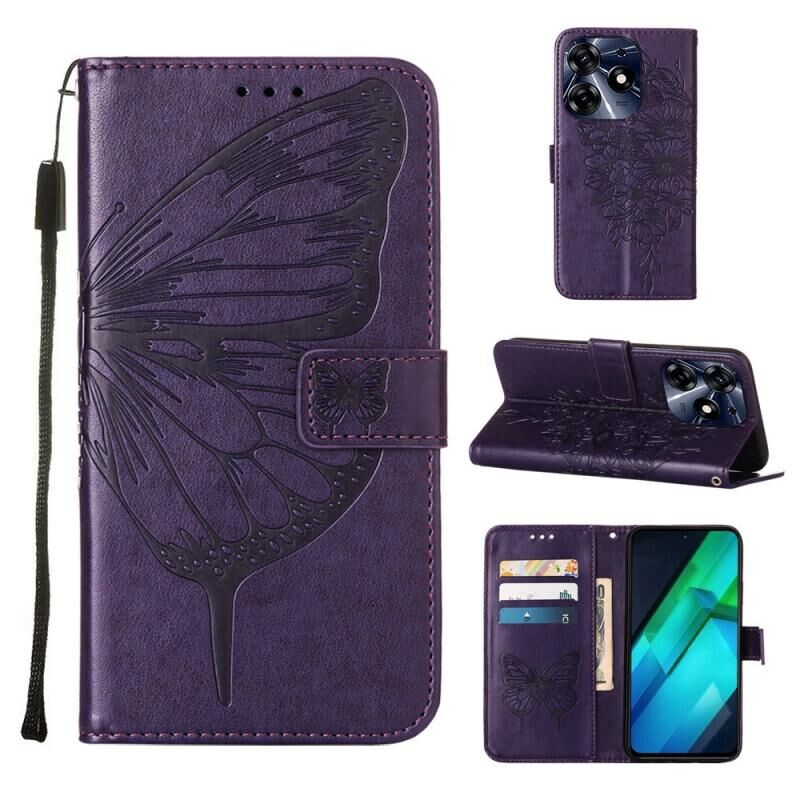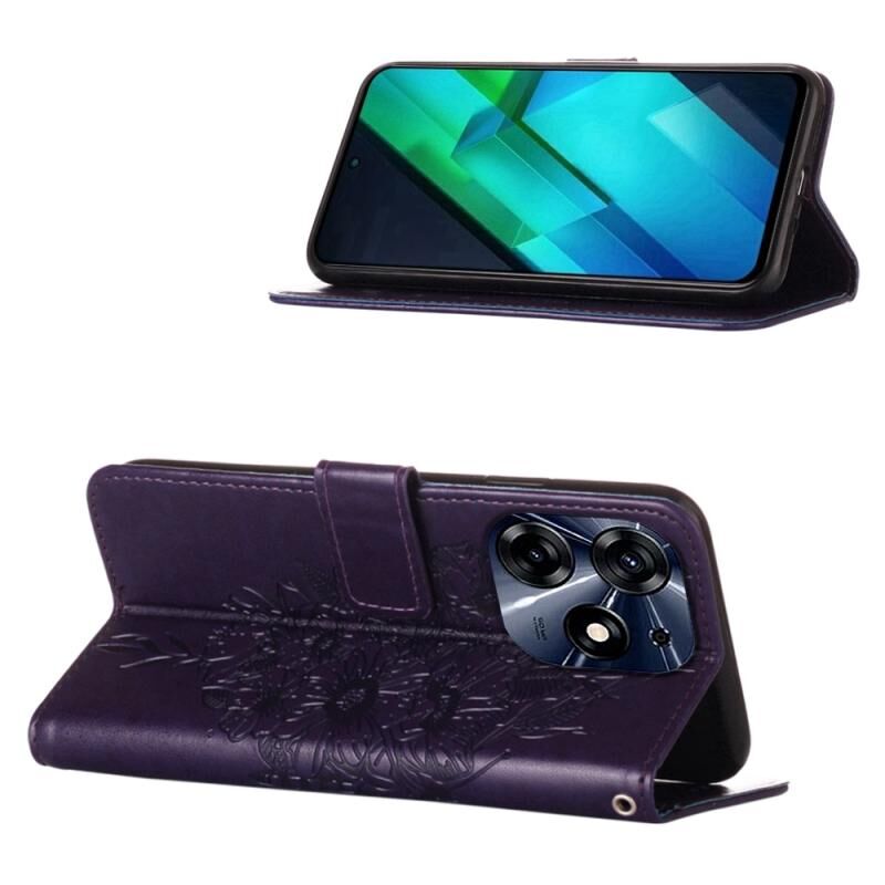 Θήκη τηλεφώνου από δέρμα με ανάγλυφο σχέδιο πεταλούδας για Tecno Spark 10 Pro / Ki7 (Μαύρο)