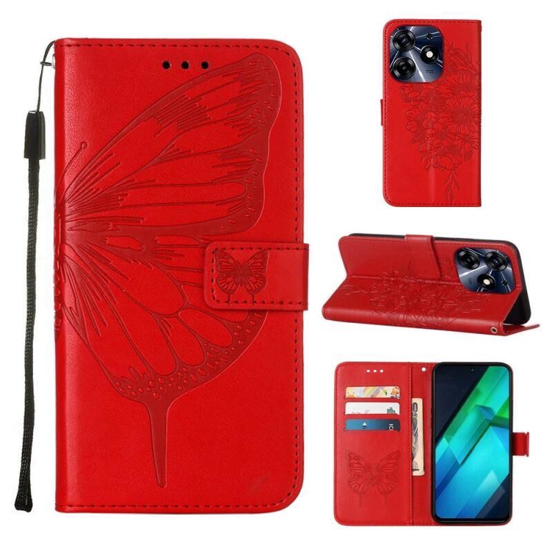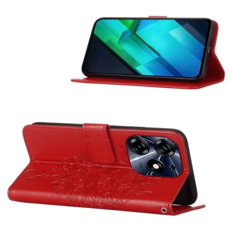 Θήκη τηλεφώνου από δέρμα με ανάγλυφο σχέδιο πεταλούδας για Tecno Spark 10 Pro / Ki7 (Μαύρο)