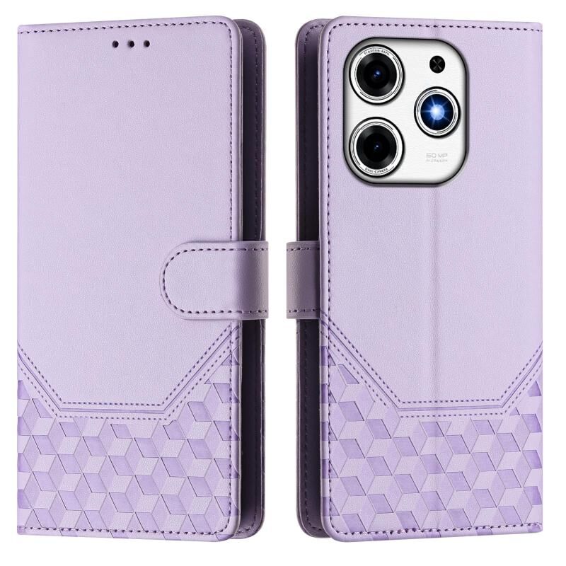 Για Tecno Spark 10 Pro Magic Magenta Honeycomb ανάγλυφη RFID δερμάτινη θήκη τηλεφώνου (ανοιχτό μοβ)