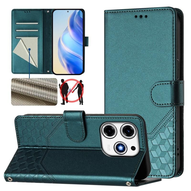 Για Tecno Spark 10 Pro Magic Magenta Honeycomb ανάγλυφη RFID δερμάτινη θήκη τηλεφώνου (Πράσινο παγώνι)