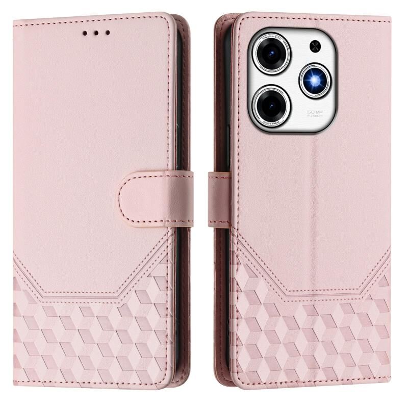 Για Tecno Spark 10 Pro Magic Magenta Honeycomb ανάγλυφη RFID δερμάτινη θήκη τηλεφώνου (ροζ)