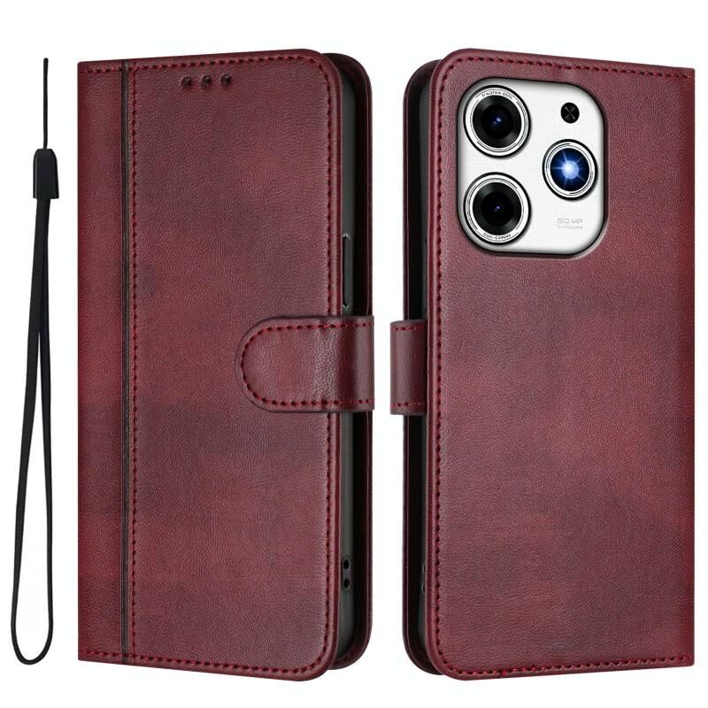 For Tecno Spark 10 Pro Magic Magenta Line Splicing Buckle Retro Leather Phone Case(Wine Red)