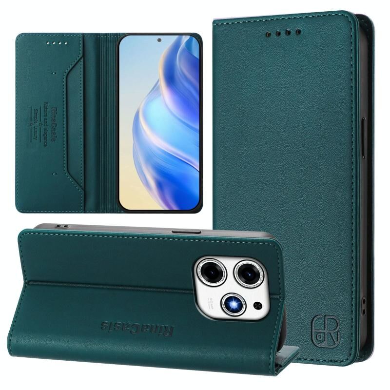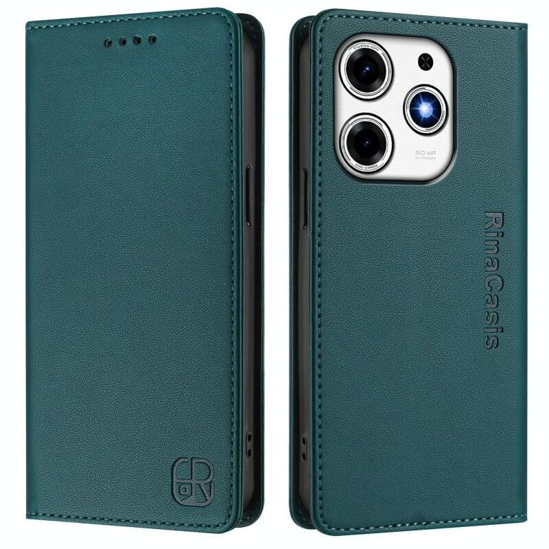 For Tecno Spark 10 Pro Magic RC01 Dual-Folded Magnetic Suction RFID Leather Phone Case(Dark Green)