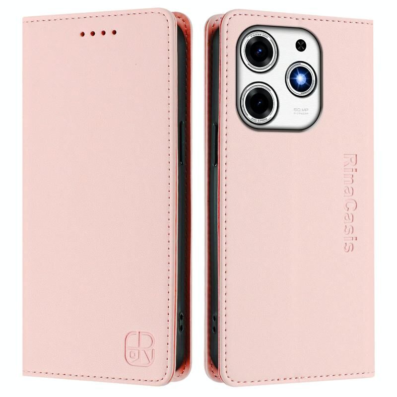 For Tecno Spark 10 Pro Magic RC01 Dual-Folded Magnetic Suction RFID Leather Phone Case(Pink)
