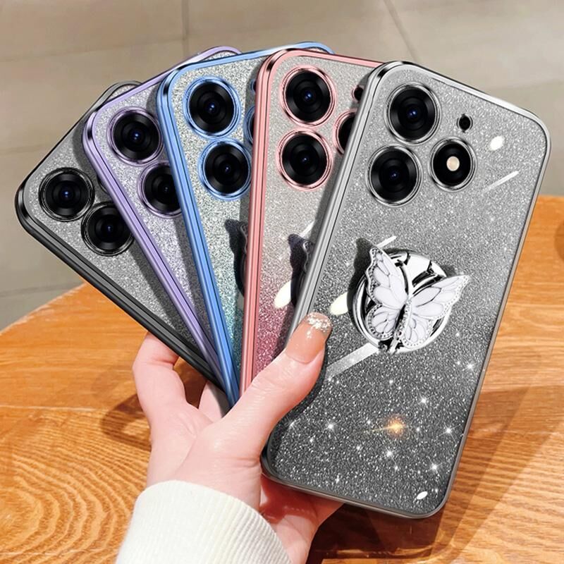 Για Tecno Spark 10 Pro Επιμεταλλωμένο διαβάθμιση Glitter πεταλούδα κάτοχος TPU τηλέφωνο υπόθεση (Sierra Blue)