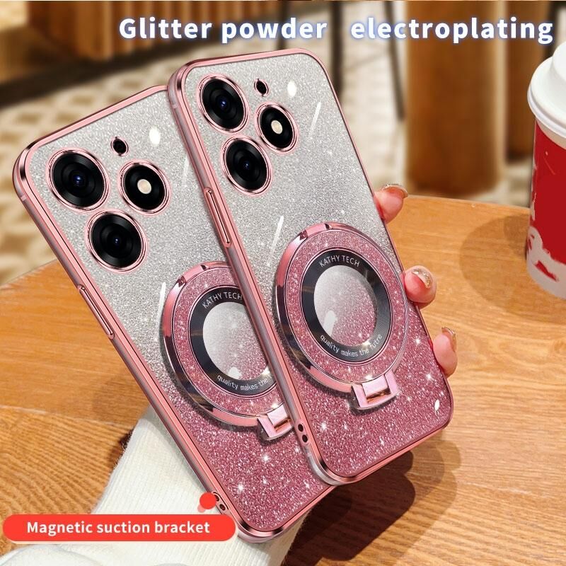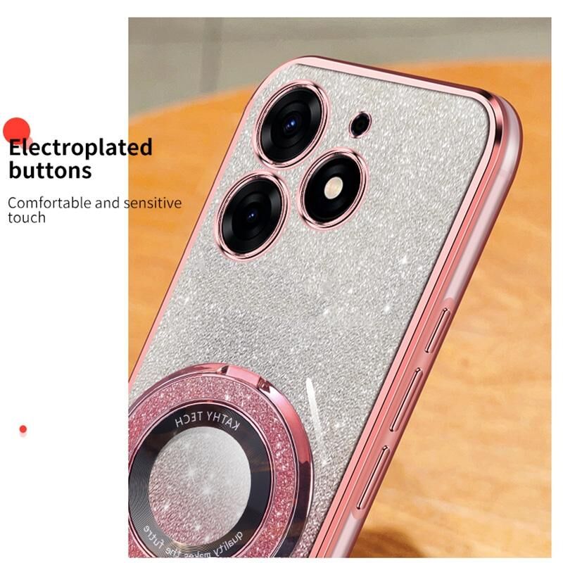Για Tecno Spark 10 Pro Επιμεταλλωμένο διαβάθμιση Glitter στρογγυλό κάτοχος TPU υπόθεση τηλεφώνου (ροζ)