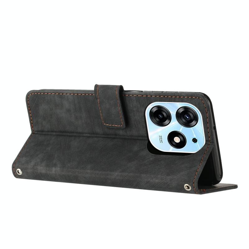 Για Tecno Spark 10 Pro Skin Feel Stripe Pattern Δερμάτινη θήκη τηλεφώνου με κορδόνι (Μαύρο)