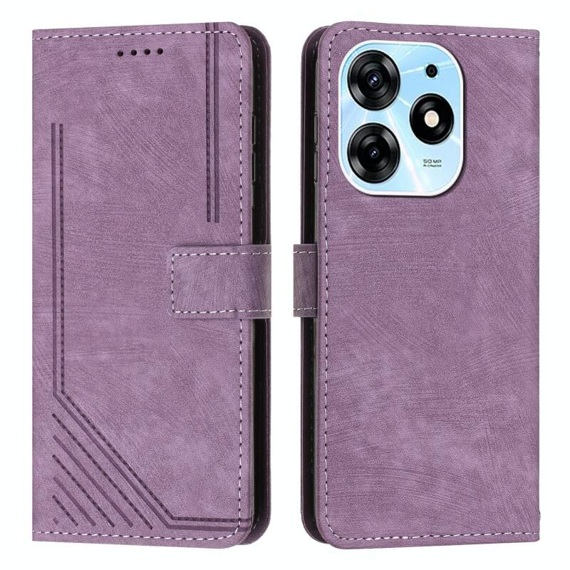 Για Tecno Spark 10 Pro Skin Feel Stripe Pattern δερμάτινη θήκη τηλεφώνου με κορδόνι (μωβ)