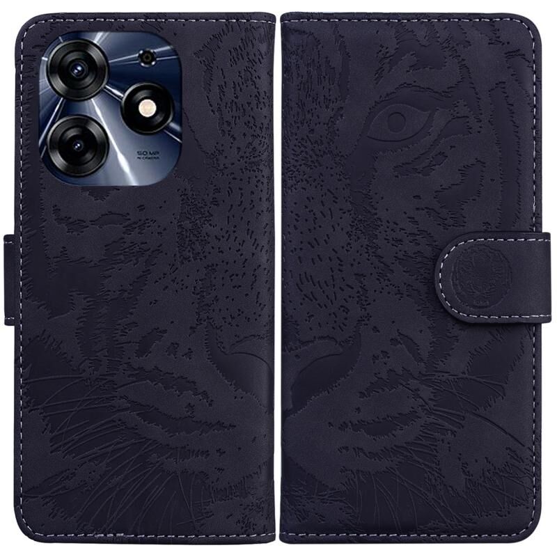 Θήκη τηλεφώνου από δέρμα με σχέδιο Tiger Embossing για Tecno Spark 10 Pro (Μαύρο)
