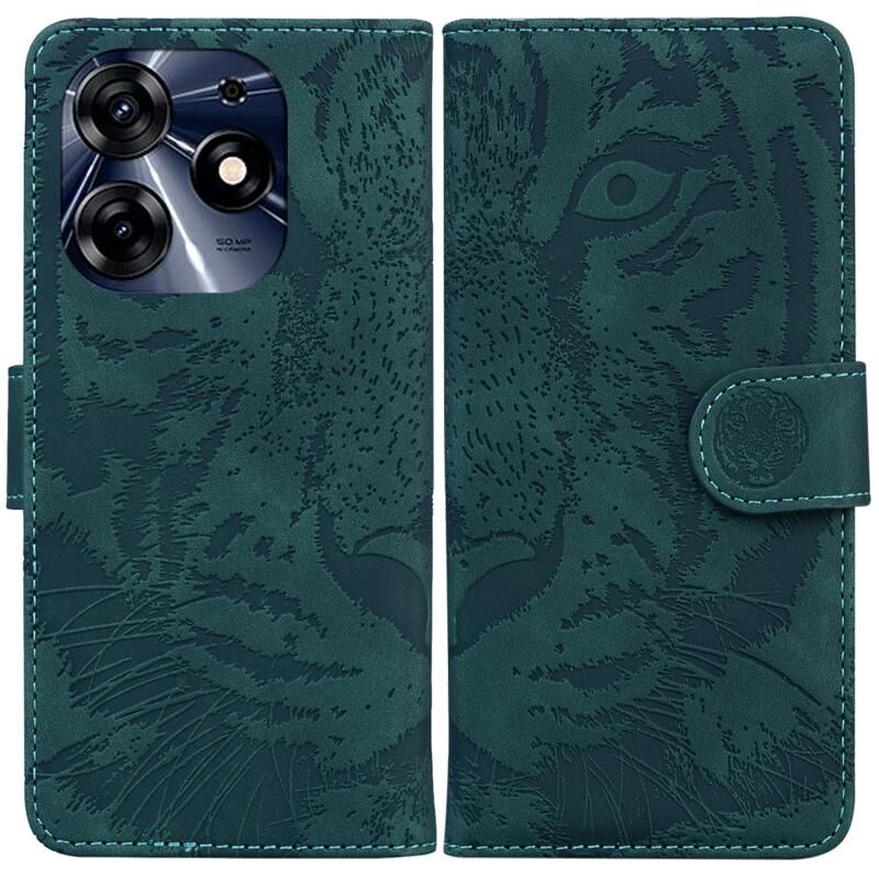 Θήκη τηλεφώνου από δέρμα με σχέδιο Tiger Embossing για Tecno Spark 10 Pro (Μαύρο)