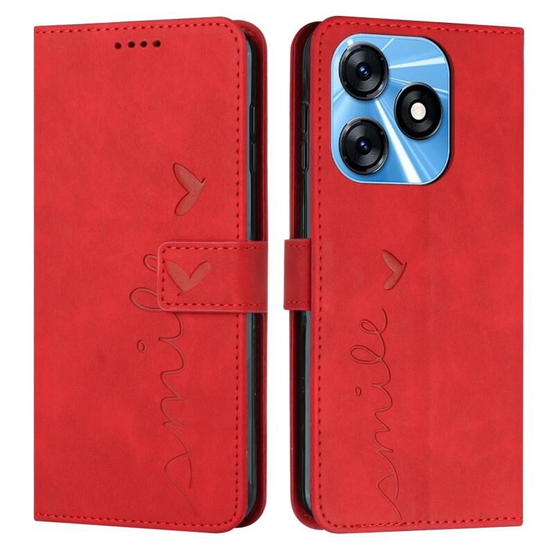 Για Tecno Spark 10 δέρμα αίσθηση καρδιά μοτίβο δερμάτινη θήκη τηλεφώνου (κόκκινο)
