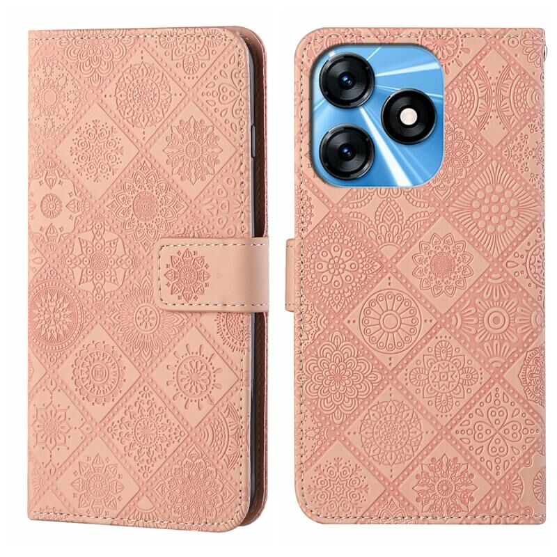Θήκη τηλεφώνου από δέρμα με ανάγλυφο σχέδιο εθνοτικού στυλ για Tecno Spark 10 / Spark 10C (Καφέ)