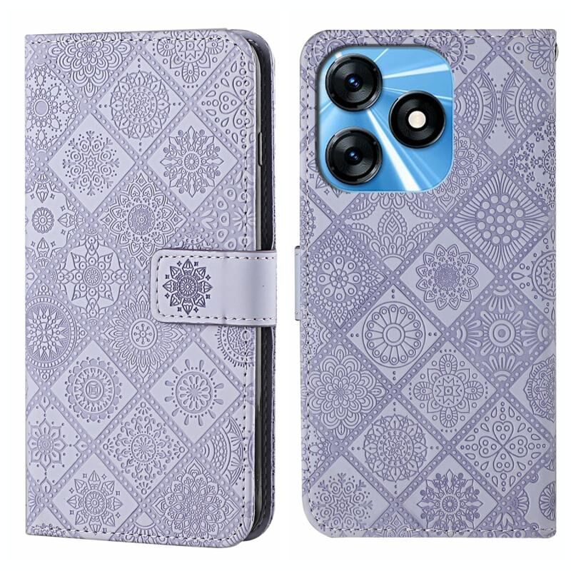 Θήκη τηλεφώνου από δέρμα με ανάγλυφο σχέδιο εθνοτικού στυλ για Tecno Spark 10 / Spark 10C (Καφέ)