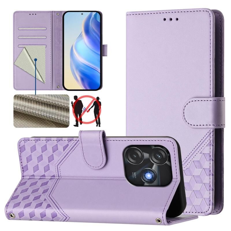 Για Tecno Spark 10C / 10 4G κηρήθρα ανάγλυφη RFID δερμάτινη θήκη τηλεφώνου (Light Purple)