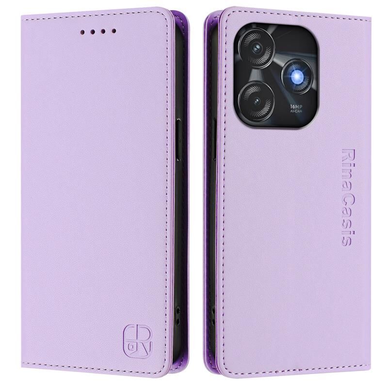 For Tecno Spark 10C / 10 4G RC01 Dual-Folded Magnetic Suction RFID Leather Phone Case(Light Purple)