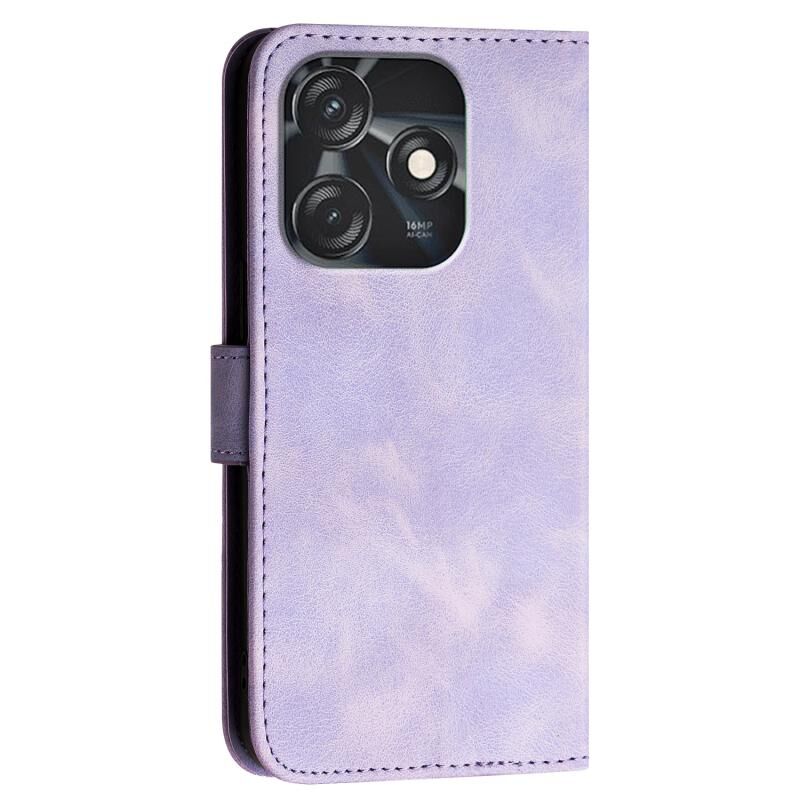 For Tecno Spark 10C Grid Butterfly Embossed Pattern Leather Phone Case with Lanyard(Light Purple)