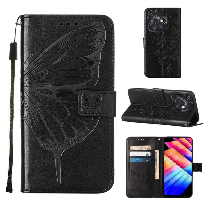 Θήκη τηλεφώνου από δέρμα με ανάγλυφο σχέδιο πεταλούδας για Tecno Spark 10C / K15Q (Μαύρο)