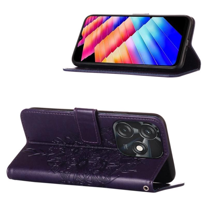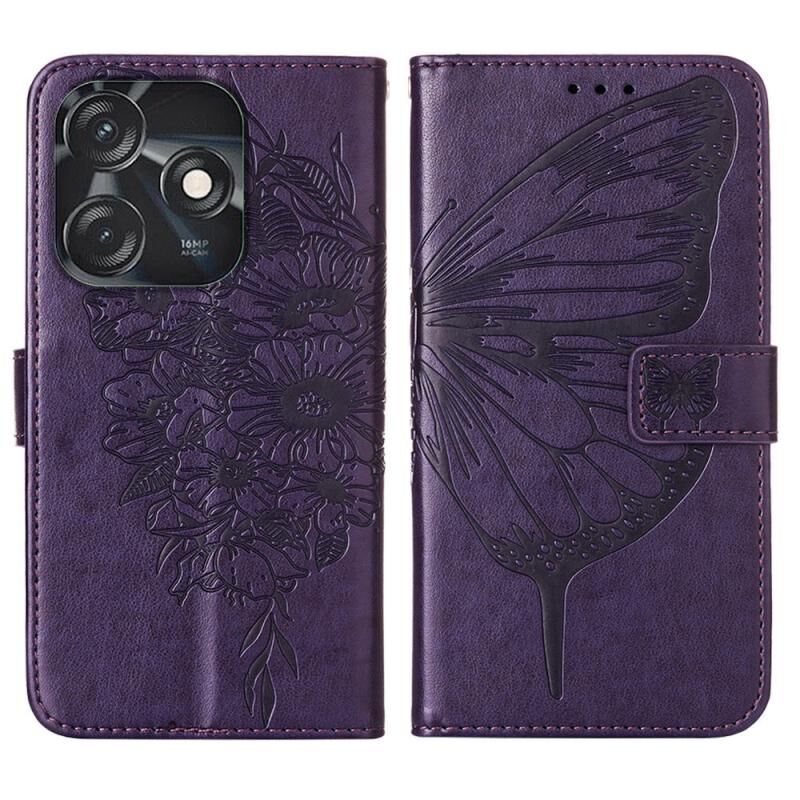 Θήκη τηλεφώνου από δέρμα με ανάγλυφο σχέδιο πεταλούδας για Tecno Spark 10C / K15Q (Μαύρο)