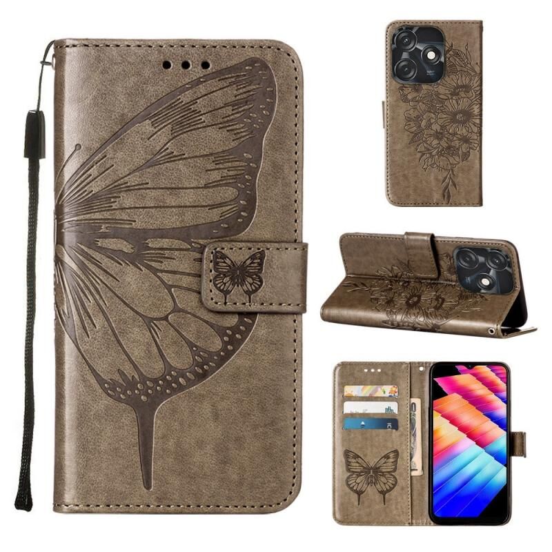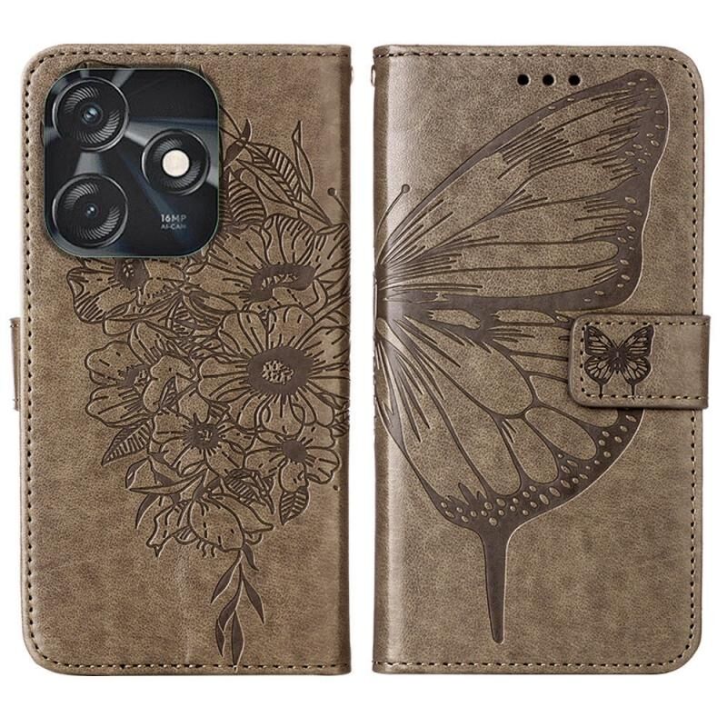 Θήκη τηλεφώνου από δέρμα με ανάγλυφο σχέδιο πεταλούδας για Tecno Spark 10C / K15Q (Μαύρο)