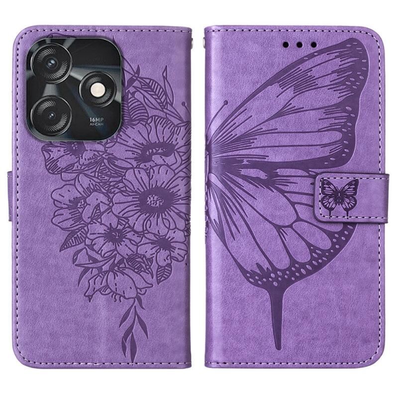 Θήκη τηλεφώνου από δέρμα με ανάγλυφο σχέδιο πεταλούδας για Tecno Spark 10C / K15Q (Μαύρο)