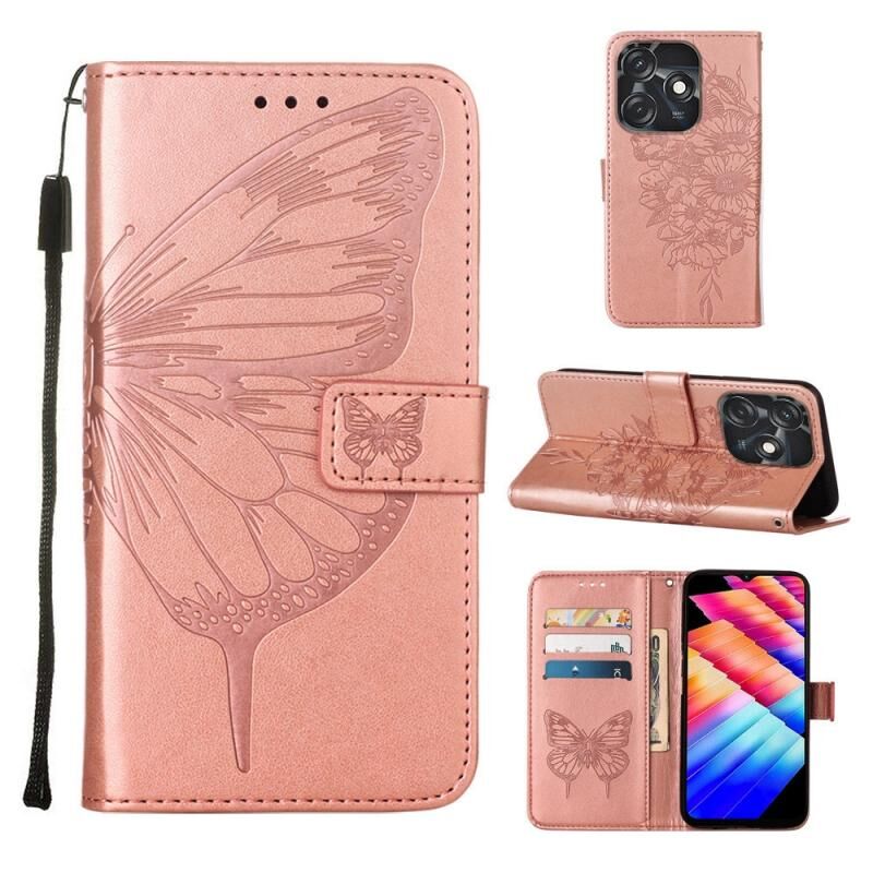Θήκη τηλεφώνου από δέρμα με ανάγλυφο σχέδιο πεταλούδας για Tecno Spark 10C / K15Q (Μαύρο)