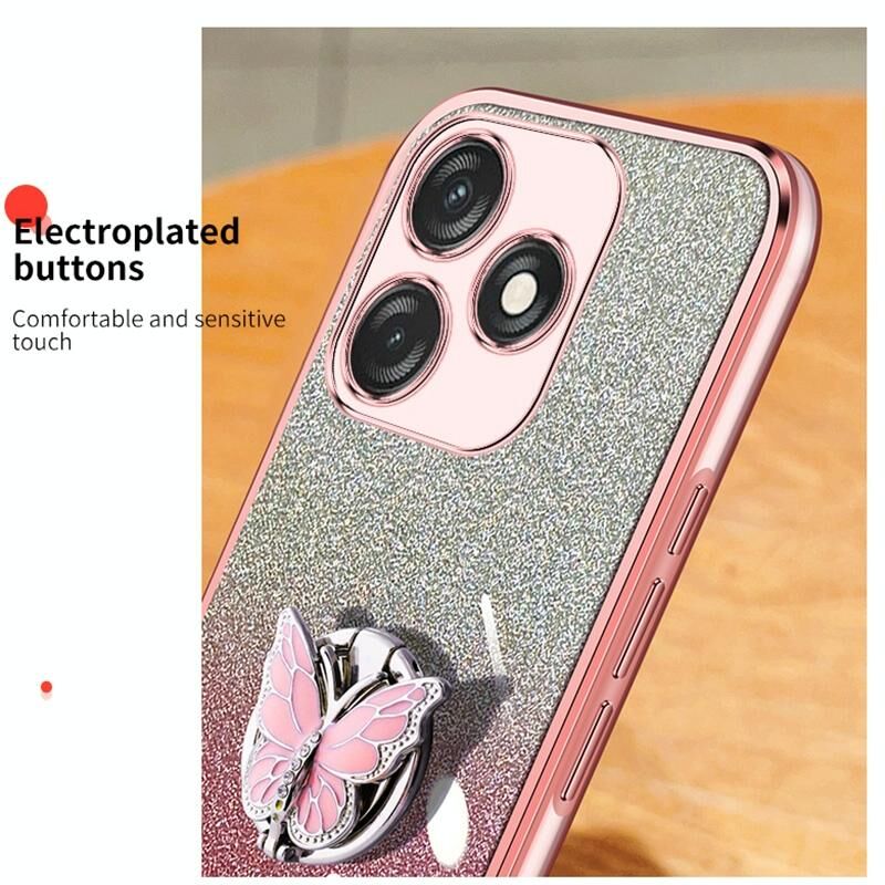 Για Tecno Spark 10C Επιμεταλλωμένο διαβάθμιση Glitter πεταλούδα κάτοχος TPU τηλέφωνο υπόθεση (μωβ)