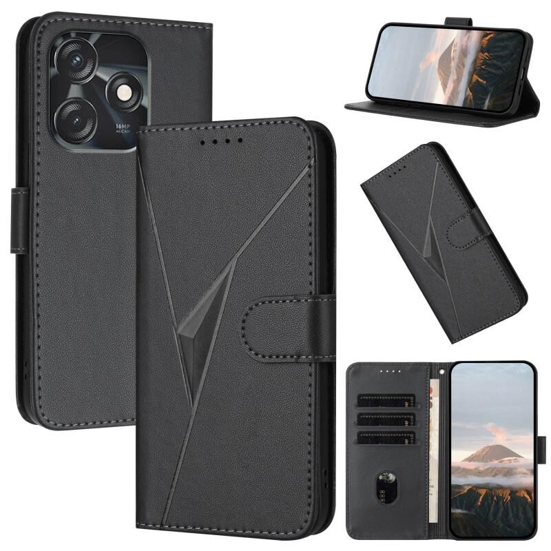 For Tecno Spark 10C Triangle Pattern Buckle Clasp Leather Phone Case(Black)