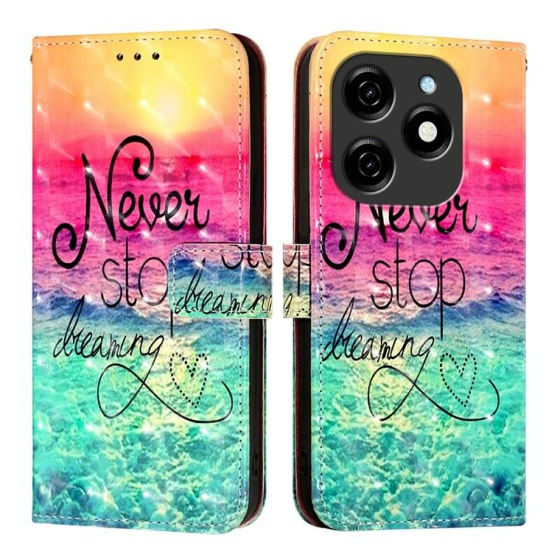 Θήκη τηλεφώνου από δέρμα με οριζόντια αναδίπλωση και τρισδιάστατη ζωγραφική για Tecno Spark 20 (Κυνηγώντας Όνειρα)
