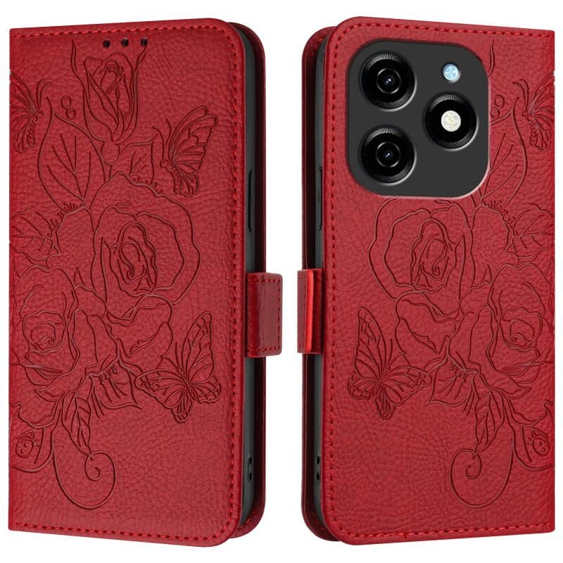 For Tecno Spark 20 Embossed Rose RFID Anti-theft Leather Phone Case(Red)