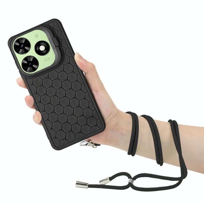 Για Tecno Spark 20 κηρήθρα ακτινοβολία κάτοχος TPU τηλέφωνο υπόθεση με κορδόνι (μαύρο)