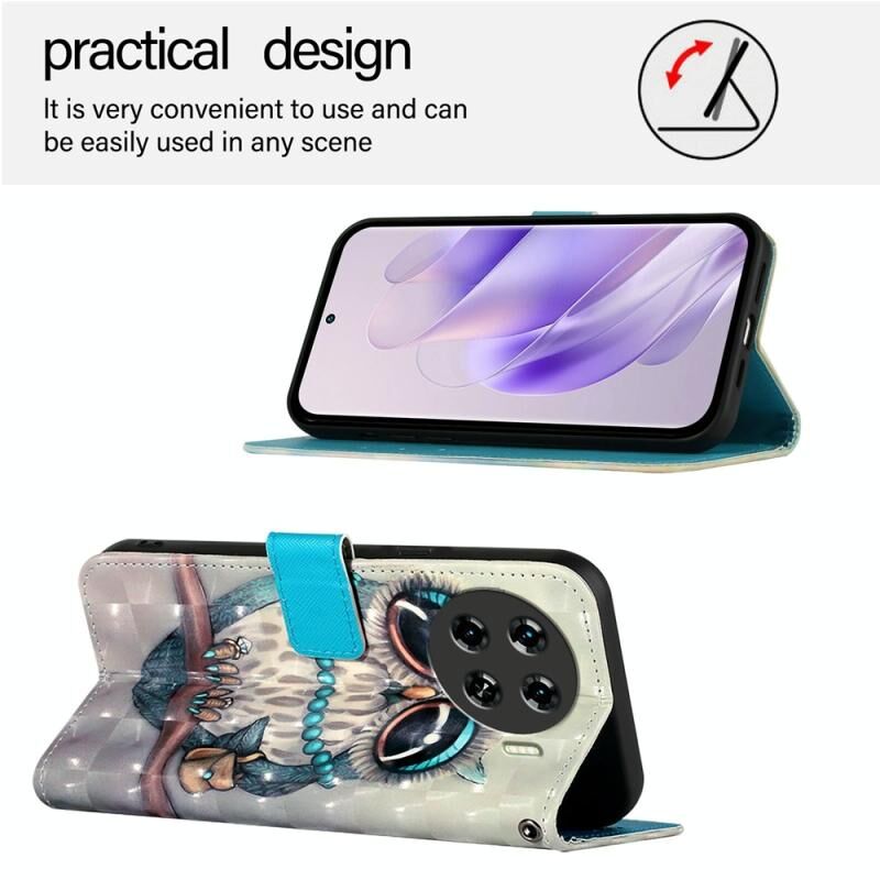 Θήκη τηλεφώνου από δέρμα με οριζόντια αναδίπλωση και τρισδιάστατη βαφή για Tecno Spark 20 Pro+ (Γκρι κουκουβάγια)