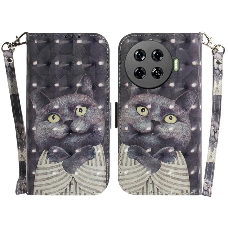 Θήκη τηλεφώνου δερμάτινη, οριζόντια, αναδιπλούμενη, με τρισδιάστατα χρώματα για Tecno Spark 20 Pro+ 4G (Hug Cat)
