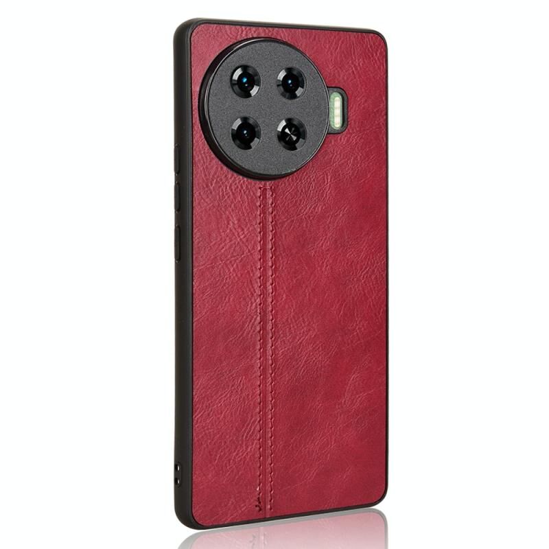 Για Tecno Spark 20 Pro + 4G αγελάδα μοτίβο ραπτικής κάρτα τσάντα υπόθεση τηλεφώνου (κόκκινο)