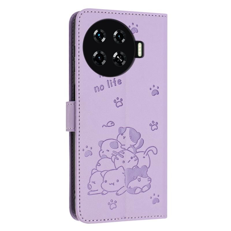 Θήκη δέρματος τηλεφώνου με ανάγλυφο γατάκι και λουρί για Tecno Spark 20 Pro+ 4G (Μωβ)