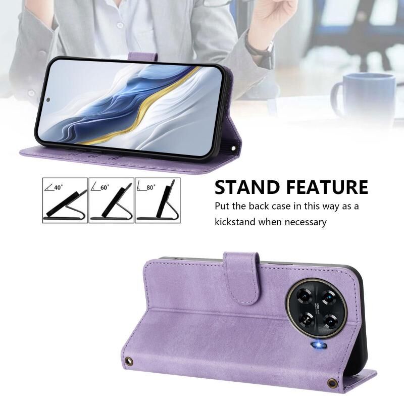 Θήκη τηλεφώνου Tecno Spark 20 Pro+ 4G από δέρμα retro με αγκράφα σύνδεσης γραμμής (Μαύρο)