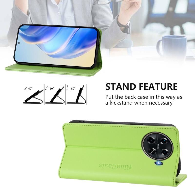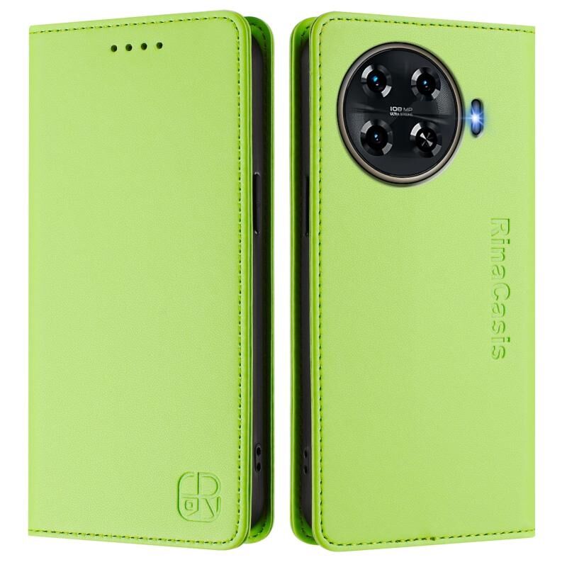 For Tecno Spark 20 Pro+ 4G RC01 Dual-Folded Magnetic Suction RFID Leather Phone Case(Grass Green)