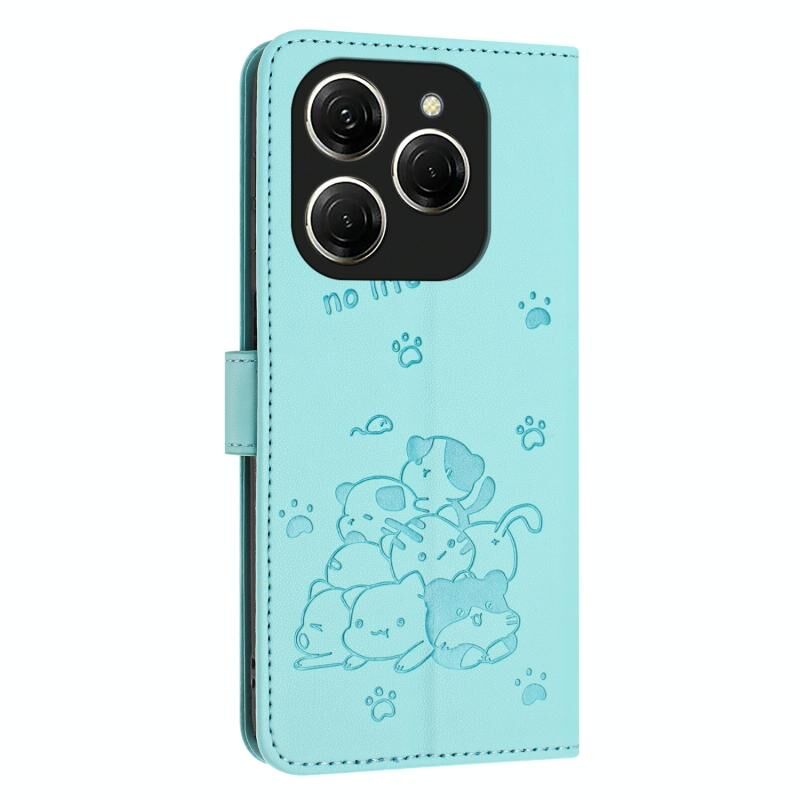 Θήκη δέρματος τηλεφώνου με ανάγλυφο γατάκι και λουρί για Tecno Spark 20 Pro 5G (Μωβ)