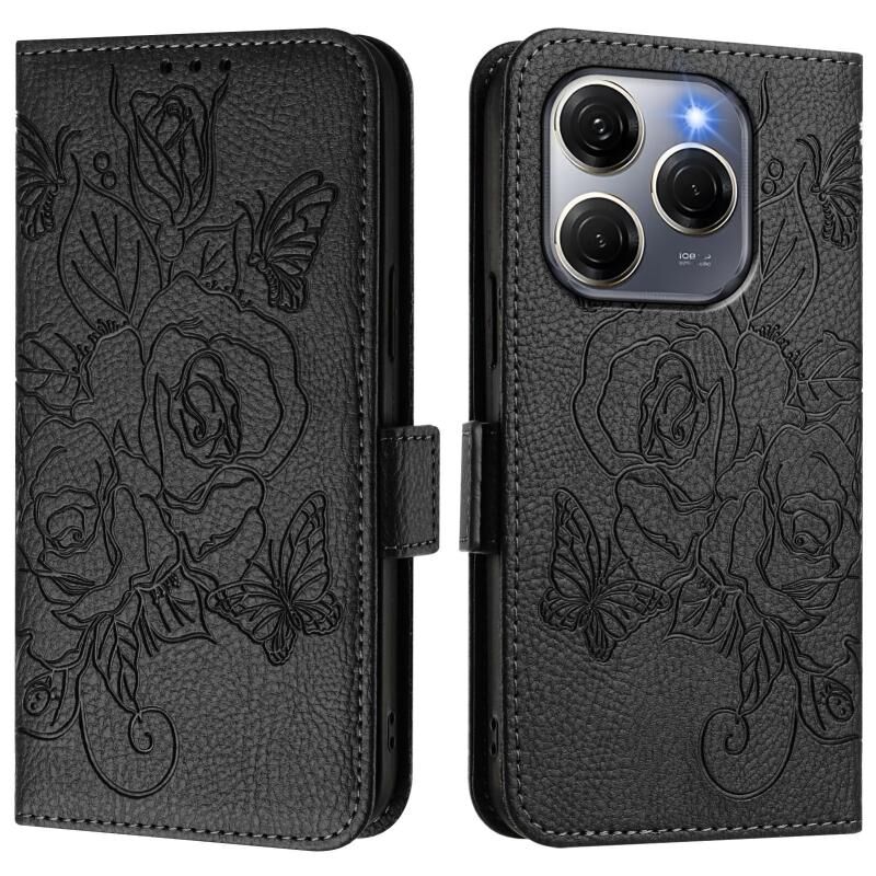 For Tecno Spark 20 Pro 5G Embossed Rose RFID Anti-theft Leather Phone Case(Black)