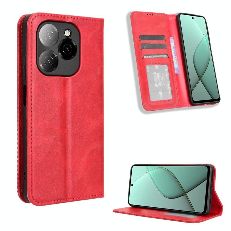 Για Tecno Spark 20 Pro 5G Μαγνητική πόρπη ρετρό υφή δερμάτινη θήκη τηλεφώνου (κόκκινο)