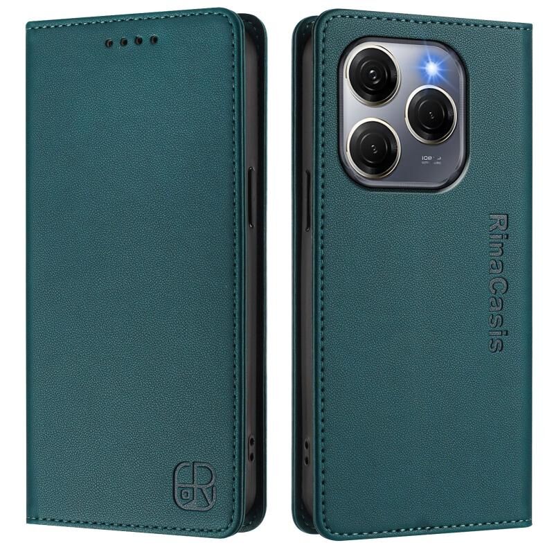 For Tecno Spark 20 Pro 5G RC01 Dual-Folded Magnetic Suction RFID Leather Phone Case(Dark Green)