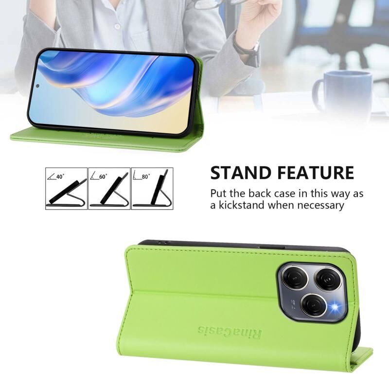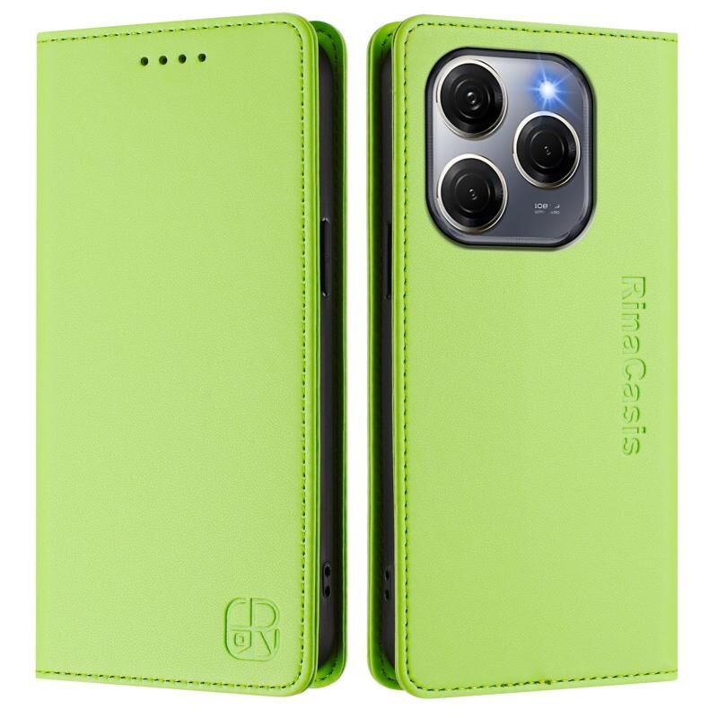 For Tecno Spark 20 Pro 5G RC01 Dual-Folded Magnetic Suction RFID Leather Phone Case(Grass Green)
