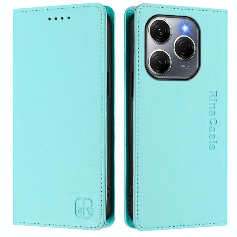 For Tecno Spark 20 Pro 5G RC01 Dual-Folded Magnetic Suction RFID Leather Phone Case(Mint Green)