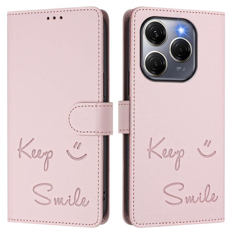 For Tecno Spark 20 Pro 5G Smile Embossing RFID Leather Phone Case(Pink)