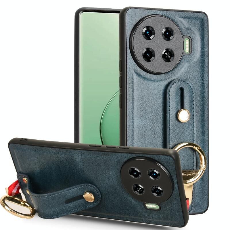 Για Tecno Spark 20 Pro+ 5G Wristband δέρμα πίσω υπόθεση τηλεφώνου (μπλε)