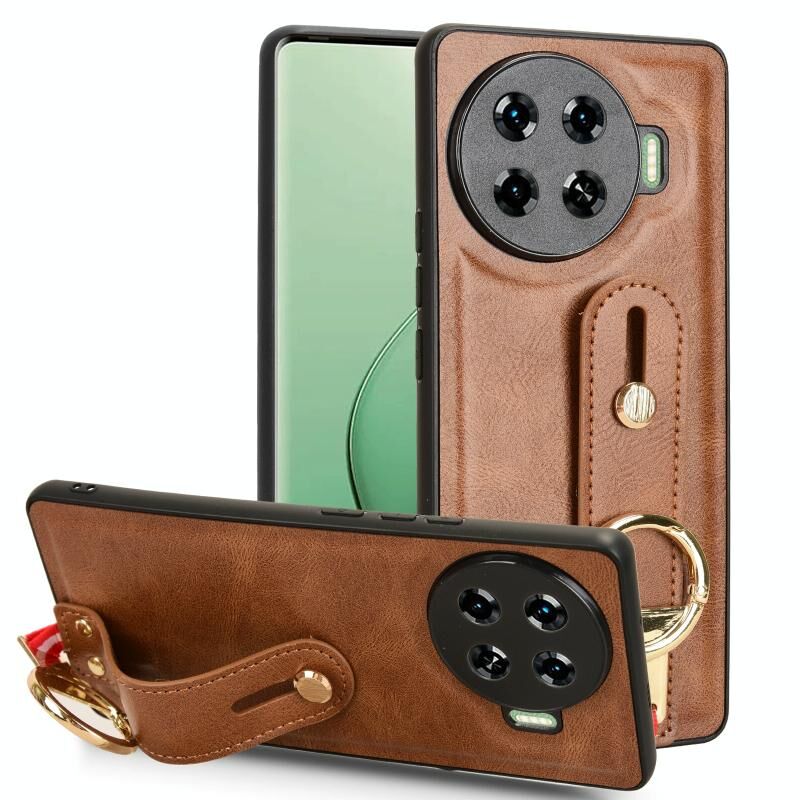 Για Tecno Spark 20 Pro + 5G Wristband δέρμα πίσω υπόθεση τηλεφώνου (καφέ)