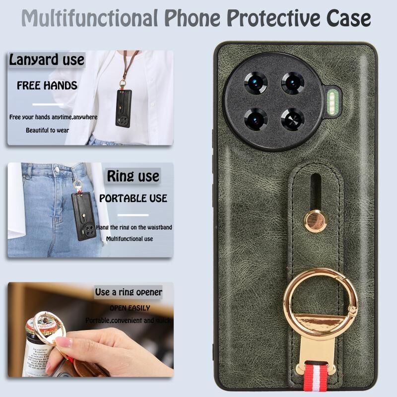 Για Tecno Spark 20 Pro+ 5G Wristband δέρμα πίσω υπόθεση τηλεφώνου (πράσινο)