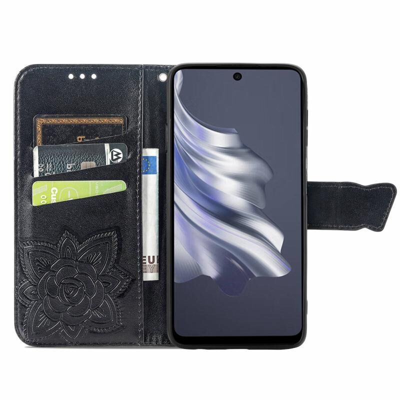 Θήκη τηλεφώνου Tecno Spark 20 Pro Butterfly Love Flower Embossed Leather (Μαύρο)
