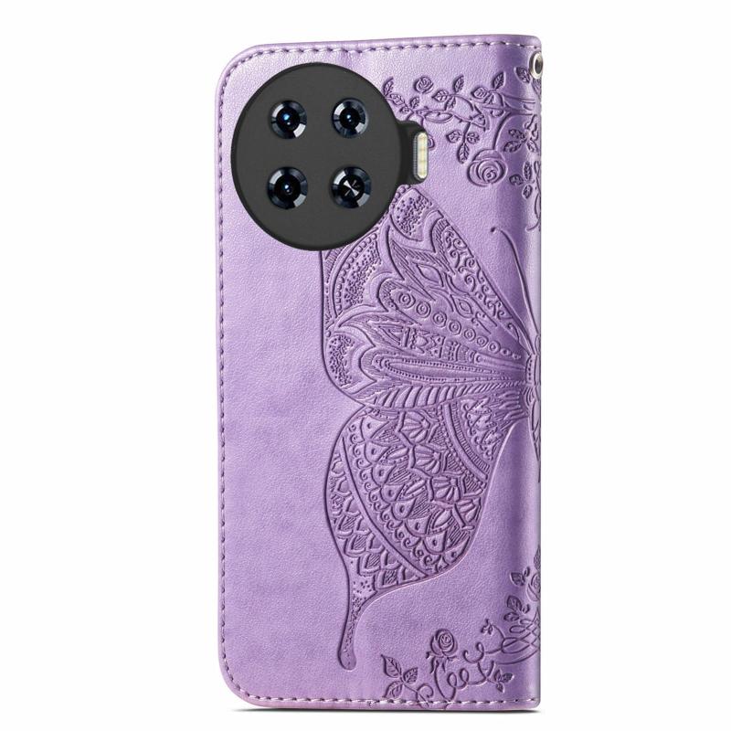 For Tecno Spark 20 Pro+ Butterfly Love Flower Embossed Leather Phone Case(Light Purple)